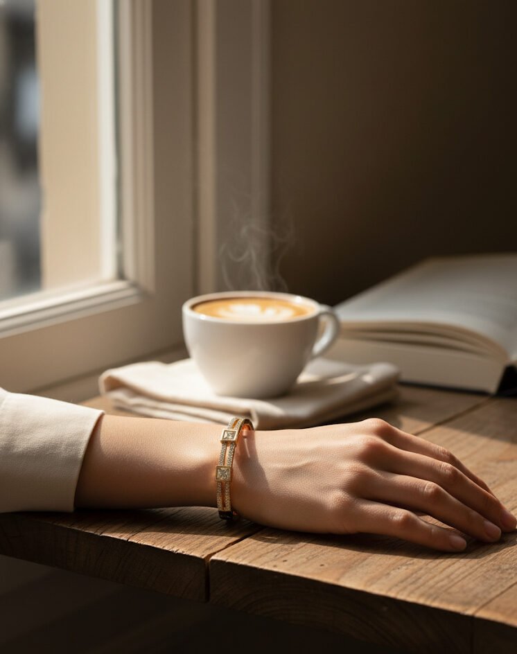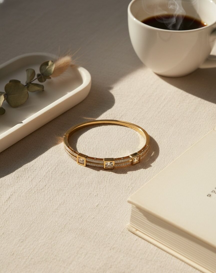 A charming rose gold cuff with a sparkling stone, designed for kids – cute, comfortable, and perfect for everyday wear.