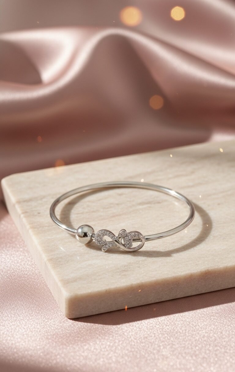 & Free ShippingAdd a touch of elegance to any outfit with our Twinkling Petals Cuff Bangle. Crafted in high-quality silver, this delicate cuff features a beautiful floral design adorned with sparkling stones that catch the light with every movement. Its open-ended design makes it adjustable and comfortable for daily wear or special occasions.
